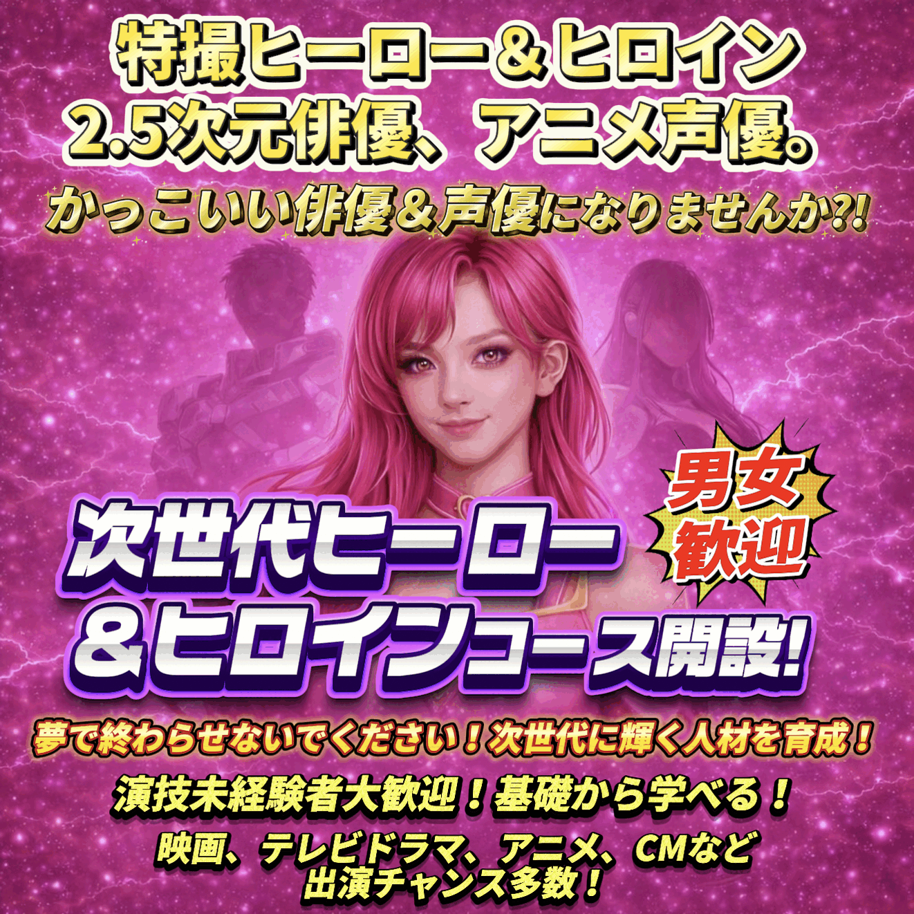 特撮ヒーロー&ヒロイン俳優・2.5次元俳優・アニメ声優・アニソン歌手など全てを目指しませんか?